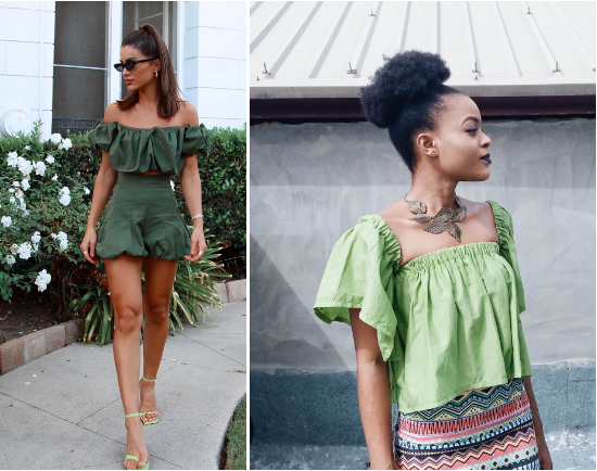 This might be our favourite tone of green! Do you have bottoms that is the same tone of green, or have a hint of these green? Well, this is their chance to shine! Otherwise, Aztec pattern, embroidery details, or floral/leafy pattern seems to compliment this colour and cut as well.