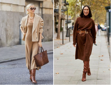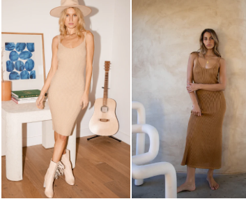 Think of the brown midi dress as a neutral backdrop to express your own style in! Try belting it in to enhance your waistline. Pair it with a long duster coat worn open or a belted cardigan for the cooler days. Can't go wrong with a classy pair of strappy heels (or stomp around in chunky boots if you prefer!) We love this video from Alyssa Beltempo getting creative with her midi dress. — click for video