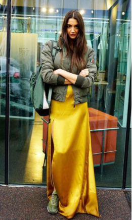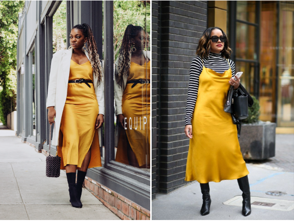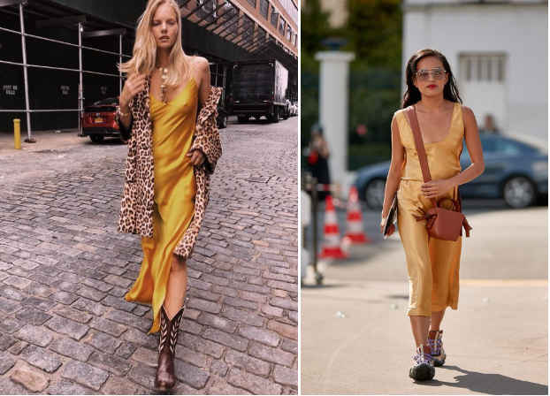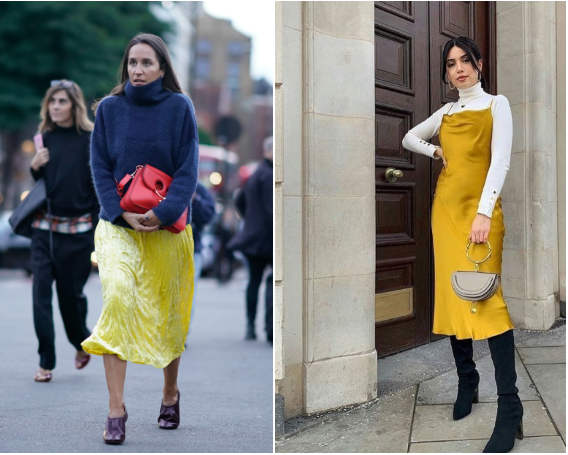 Layering is key here, so if you’d like to blend in rather than stand out like the warm sun (we need more of these), try denim, military boots, chunky cardigan, or sneakers to add a bit of grudge and comfort into the outfit.
