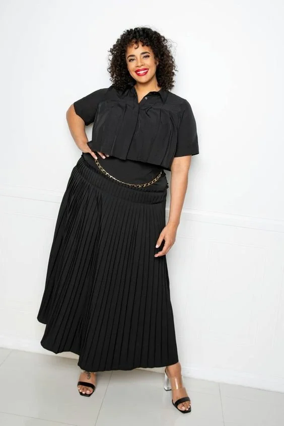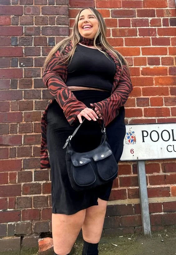 To style a textured black skirt for winter, start by pairing it with a cosy jumper in another shade of black to maintain a sleek, monochromatic vibe. Choose a jumper with a different texture, like a chunky knit or a velvet finish, to add depth and interest to the outfit.