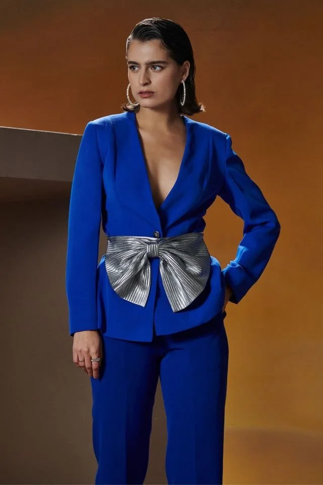 The belt tie is a stylish accessory that can be used to add shape to any outfit. Styled separately. Pair it with a loose blouse or dress to create shape, or wear it with high-waisted jeans or trousers for a trendy look. Or pair all three together!