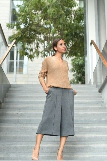 Grey structured culottes are a versatile and stylish piece that can be dressed up or down, making them perfect for your love of colours and comfortable styles. To complement the neutral grey, you can pair them with vibrant, eye-catching colours like coral, mustard yellow, emerald green, or even a bold red. These shades add a pop of brightness while keeping the look fresh and fun. For a softer contrast, pastel hues like blush pink, lavender, or mint green work beautifully with grey, creating a balanced and light-hearted outfit.